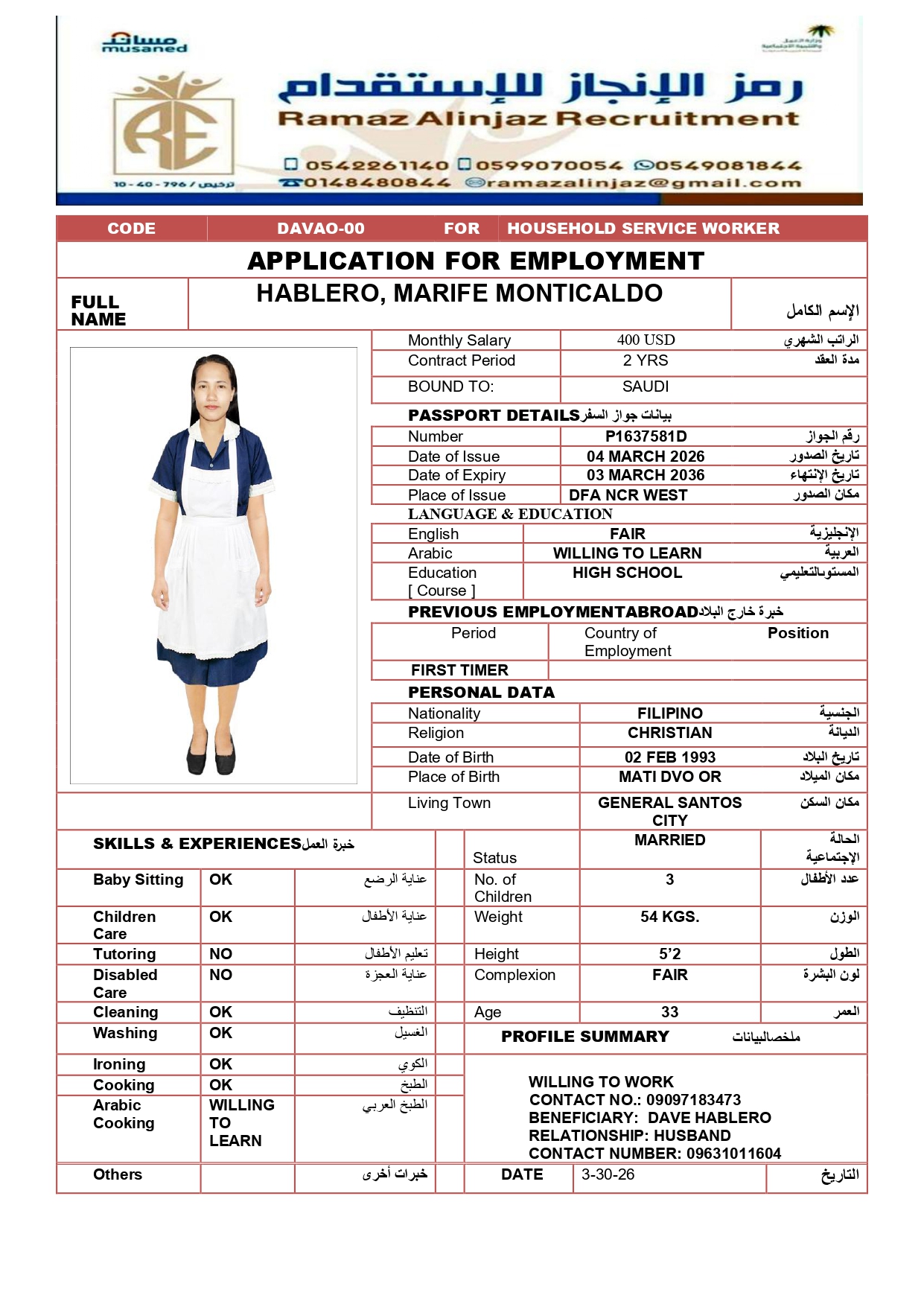 عاملة منزلية